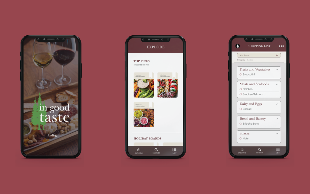 This website is a fictional website and app combination dedicated to culminating the perfect charcuterie board and wine pairings.